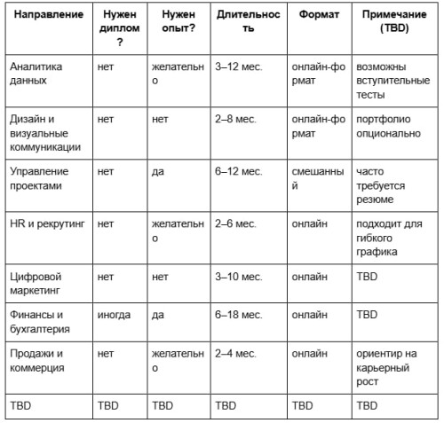 Условия, типы программ и требования могут меняться. Рекомендуется проверять информацию на странице конкретного оффера и уточнять, какие форматы доступны без диплома на момент подачи заявки.