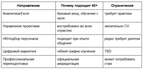 Для взрослого человека важен не только формат, но и прогноз результата. Поэтому shortlist должен учитывать возраст, возможный опыт работы и риски перегрузки.